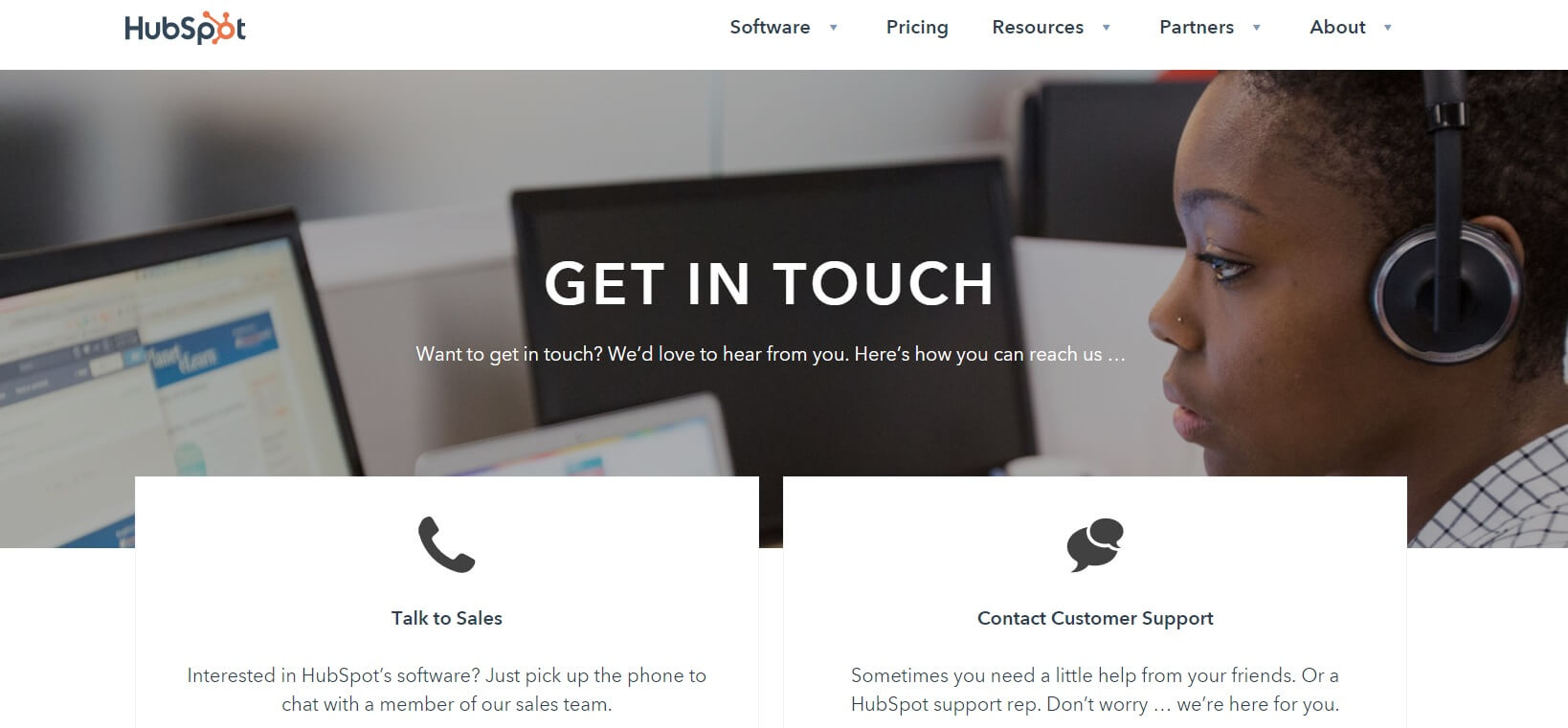 HubSpotのような大企業でさえ、連絡先ページを使用して顧客とつながります。