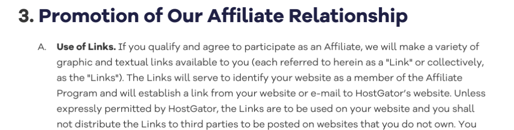 これはあなたのアフィリエイト利用規約のもう一つの非常に重要なセクションです。 これは、アフィリエイトがあなたのコンテンツを宣伝する方法と、アフィリエイトがあなたの名前で約束する方法を管理します。