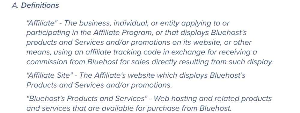 アフィリエイトマーケティングはかなりの技術用語を使用する傾向があるため、定義セクションは混乱を避けるのに役立ちます。 すべての単語を説明する必要はありませんが、あいまいな用語が使用されていると思われる場合は、このセクションでそれらを明確にしてください。