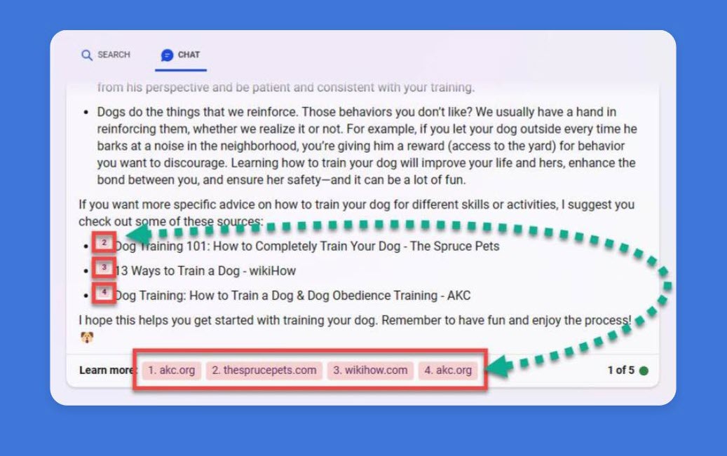 Bing と Google の両方がチャットボットにコンテンツへのリンクを含めようとしているのがわかります。