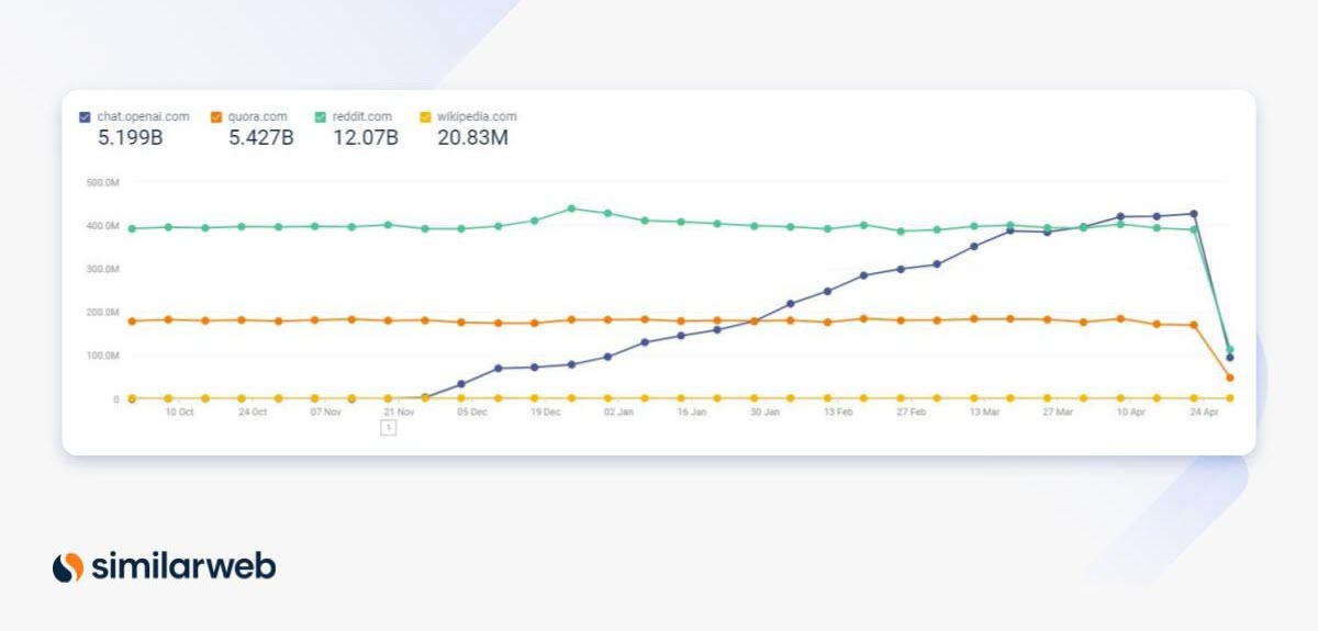 Similarweb のデータを見ると、ChatGPT の台頭がわかります。
