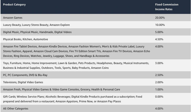 あなたの収入は手数料率によっても定義されます。 Amazonアフィリエイトの場合、これらのレートは製品カテゴリ間で異なります。