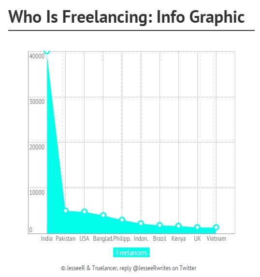 Truelancer には、インドのフリーランサーが多数を占めるフリーランサー プールがあります。 この記事を読んでいると、次の 5 分でもう 1 人のインド人フリーランサーがサインアップし、このレートが日々増加していることは注目に値します。 それはあなたに何を伝えますか?