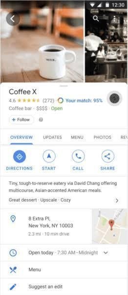 GMB では、ユーザーがリスティングのメイン画像を選択できるようになりました。 カバー写真を一定期間アップロードすることもできましたが、Google は視聴者がこの画像を常に見ることを保証していませんでした。 この新機能により、企業はローカル検索結果に画像を表示することがより便利になり、新しいプロモーションや在庫を紹介する機会がもたらされます。