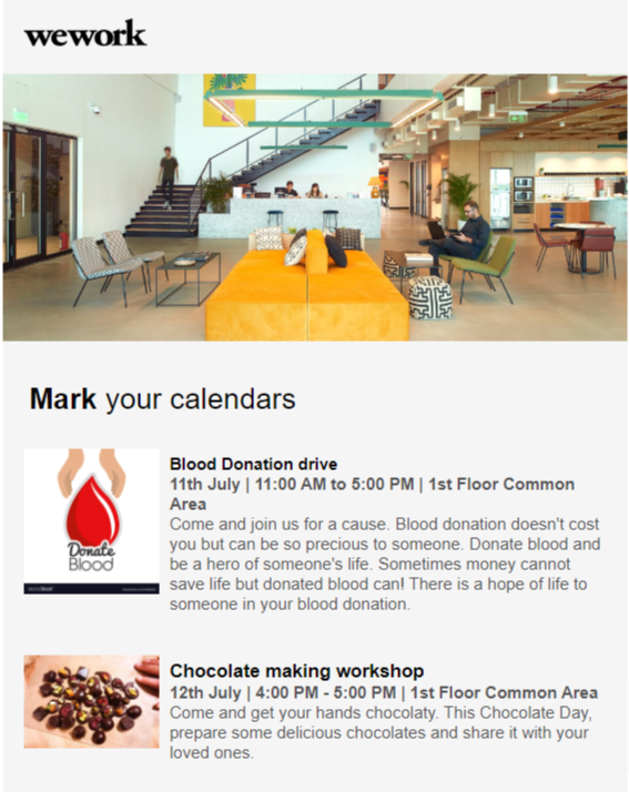 WeWork は、B2B クライアントと効果的に関わる方法としてニュースや最新情報を活用する好例です。