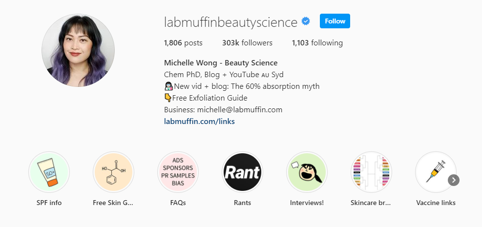 @LabMuffinBeautyScienceのMichelleWongは、美容に影響を与えるだけではありません。 彼女は博士号を取得しています。 医学および超分子化学で! ご想像のとおり、これはスキンケアの背後にある科学に関して彼女を権威として設定します。 詳細な製品レビューと製品チュートリアルに加えて、ミシェルは美容製品がどのように機能し、私たちの肌がそれらにどのように反応するかを深く掘り下げます。 あなたが美容の背後にある科学に入りたいのなら、ミシェル・ウォンは従うべき美容の影響力者です!