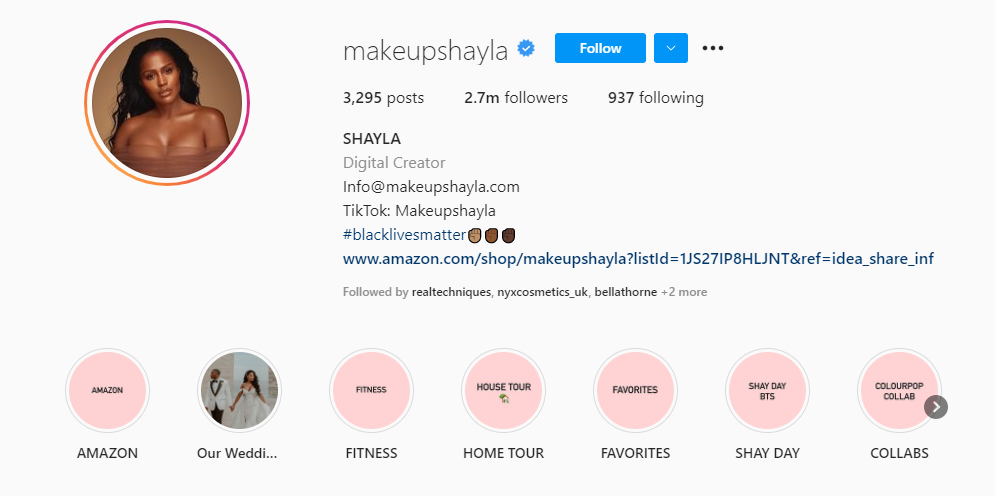 Shayla Mitchellは、 ColorPopコスメティックスの美容インフルエンサー兼ブランドアンバサダーです。 彼女のInstagramフィードでは、カジュアルから完全な魅力に至るまでのスタイルを使用して、ファッション、美容、メイクについて共有しています。 彼女はInstagramReelsを使用していくつかの素晴らしいメイクアップチュートリアルをリリースしています。また、YouTubeで彼女の共有メイクアップチュートリアルを見つけることができます。