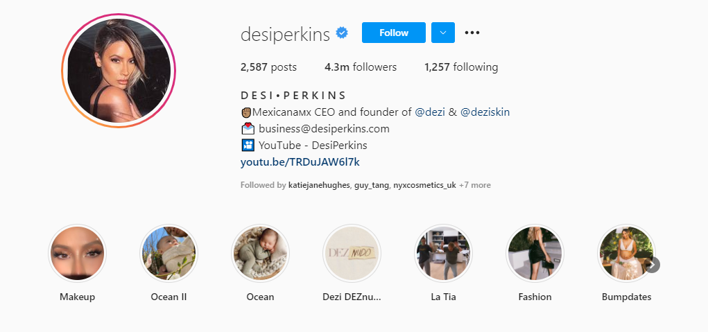 デジ・パーキンスは、自身のブランドであるDeziSkinを立ち上げた元メイクアップアーティストです。 InstagramとYouTubeで、スモーキーアイの完成からハロウィーンのメイクまで、彼女がメイクのチュートリアルを共有しているのを見つけることができます。 彼女はまた、セルフケアのヒント、ヘアヘルプ、製品レビューを共有し、最近、母親になることについてもっと共有し始めました。