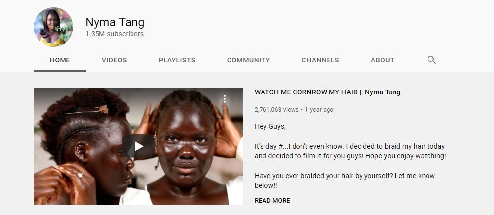 Nyma Tangは、スーダンの美容ブロガーであり、 YouTubeのインフルエンサーです。 彼女のYouTubeシリーズTheDarkestShadeは非常に人気があります。 シリーズでは、Nymaは、包括的な製品を見つけるために、多数のブランドの最も暗い肌色の色合いをテストします。 メイクのチュートリアルに加えて、Nymaは肌、髪、爪のヒント、そしてより暗い肌の色調のための美容アドバイスを共有しています。