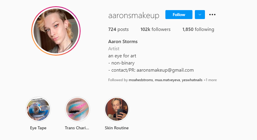 アーロンストームズは、絶対に素晴らしいアイメイクの仕事を共有するノンバイナリーの美容インフルエンサーです。 彼らはまた彼らのスキンケアルーチンについて共有します、しかしショーの本当のスターはこれらのアイメイクの外見の背後にある芸術性です。 それらから目を離さないでください!