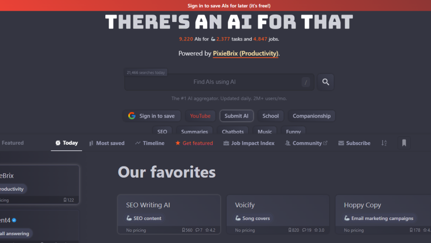 簡単なメモ:これはブログではありませんが、2,300 を超えるタスクに対する 9,000 を超える AI の最大のデータベースを備えた、No.1 AI アグリゲーター Web サイトです。