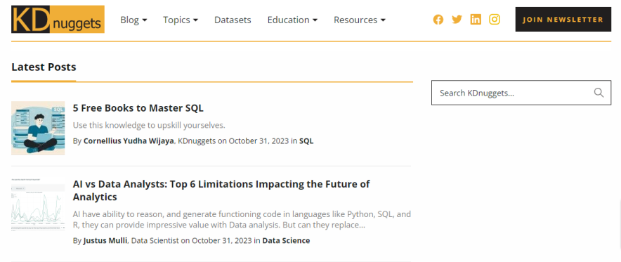 KDnuggets は、データ サイエンス、機械学習、AI、分析について学ぶためのトップ Web サイトです。 AI と機械学習に関する詳細で有益な記事をお探しの場合、KDnuggets は必読のブログです。