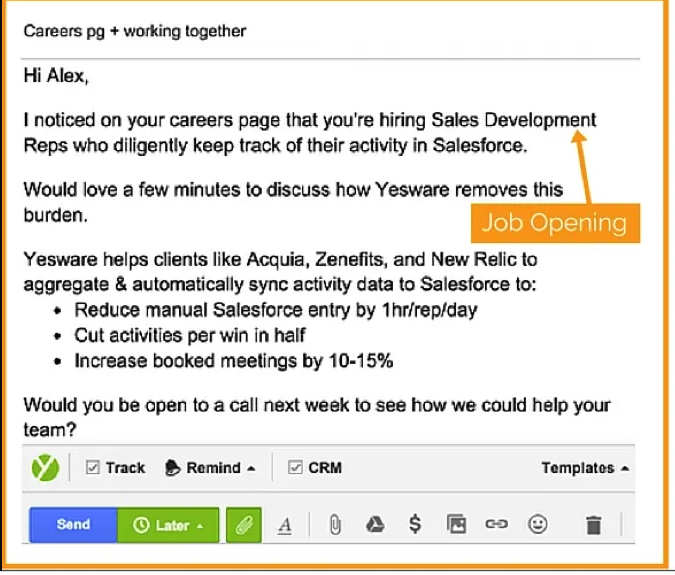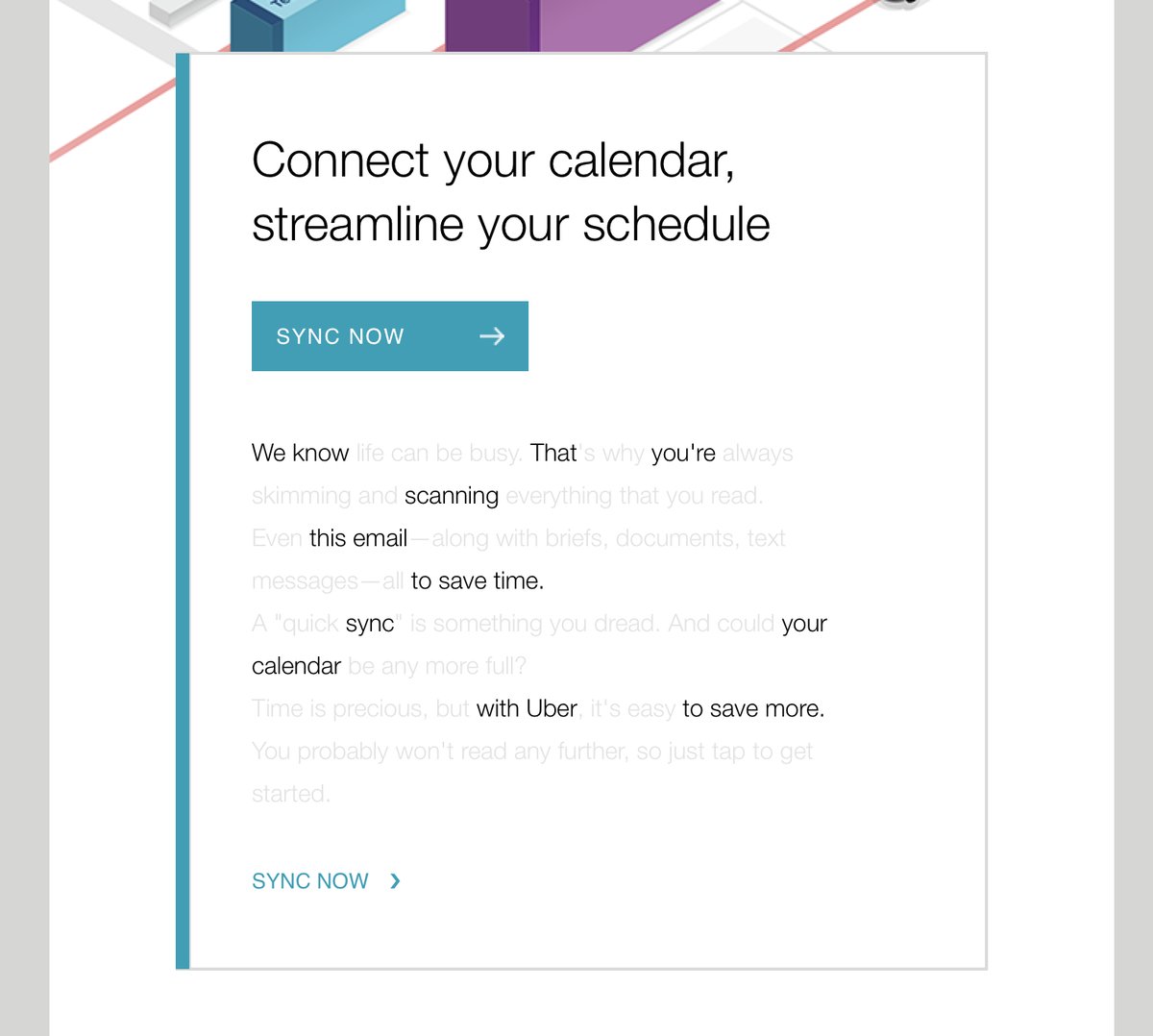 このメールには、1つのコアメッセージ以外はほとんどありません。 これは、フォーカス効果を活用して電子メールが正しい結果を確実に得られるようにする完璧な例です。