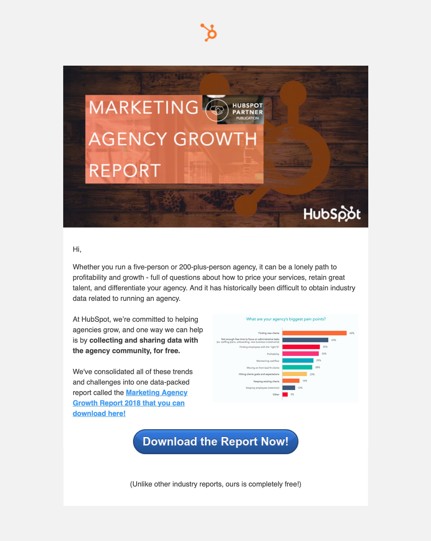 3 –基本を維持し、無料で何かを提供します。 これは、独占的なデータを含む無料のガイドを提供することで、視聴者の関心を維持するHubSpotの例です。