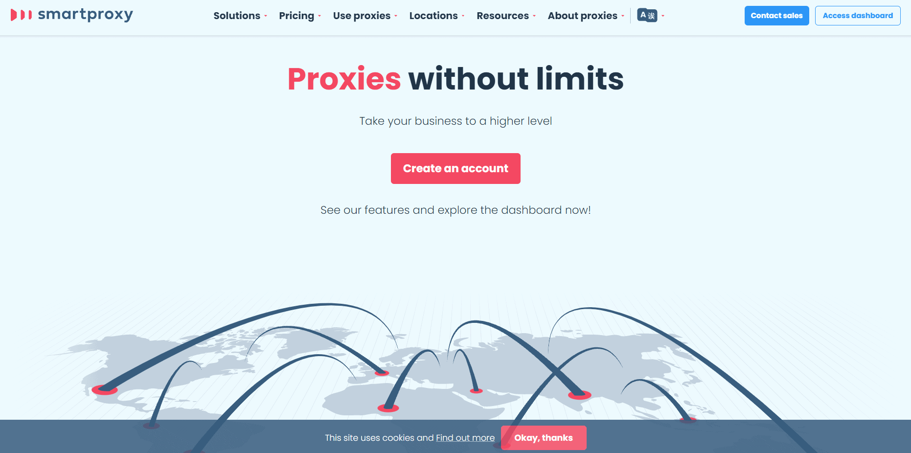 Smartproxy は、4,000 万を超える住宅用、共有、および専用のデータセンター プロキシへのアクセスを提供する、強力で包括的なプラットフォームです。 さまざまなタスクを処理できる汎用性の高いプロキシ ソリューションを探している場合は、Smartproxy が最適です。 また、Web データを簡単かつ効率的に収集できるように設計されたスクレイピング API も備えています。 Smartproxy が提供するものを詳しく見てみましょう。