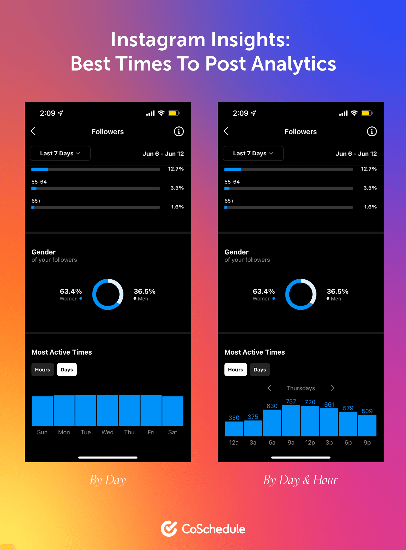 CoSchedule のマーケティング スイートとマーケティング カレンダーは、Instagram ネットワーク レポートを提供します。 ここでは、投稿するのに最適な日、投稿するのに最適なタイ、投稿するのに最適なメッセージの種類などに関する情報を見つけることができます.