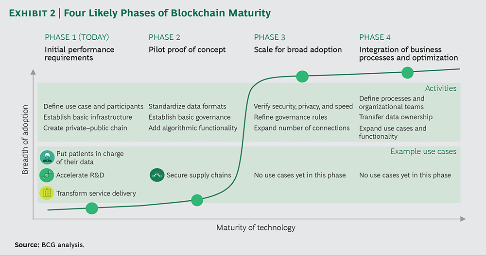フェーズ1で採用された後、現在標準化されているフェーズ2でテクノロジーが登場するのを見ることができます。その一例は、ヘルスケアサプライチェーンへの統合です。