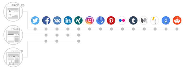 この機能を使用すると、投稿を自動的に共有できます。 また、WordPressブログを接続して、Facebookページ、プロファイル、およびグループでWordPressコンテンツを共有できるようにします。 VKグループとページ。 GoogleマイビジネスとTwitterのアカウント。 WordPressコンテンツをLinkedInページとプロファイル、およびXingページ、プロファイル、グループにリンクすることもできます。