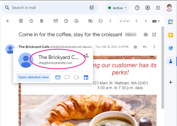 Constant Contact が顧客に代わって認証する場合 (私たちが何年も行ってきたように)、私たちは独自のドメイン (つまり、企業の Web ドメインではなく auth.ccsend.com) でメールに署名します。 何年もの間、これで十分でした。 しかし、スパムやフィッシングメールとの戦いが続く中、フレンドリーな、つまり目に見える「From:」アドレスで見つかったドメインを検証する方法を模索するメールボックス プロバイダーが増えています。 これは、顧客がメールを開いたときに表示されるアドレスです。