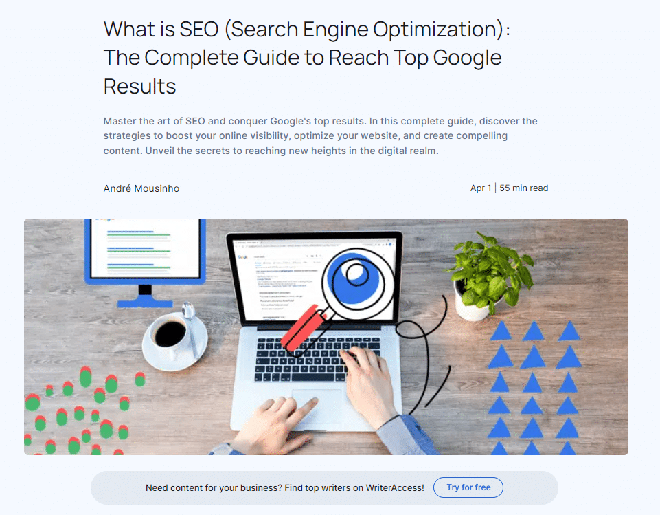 社内にマーケティング チームがある場合は、1 人以上のスタッフ メンバーに基礎コンテンツの作成を依頼できます。 もう 1 つのオプションは、WriterAccess のようなプロの SEO コンテンツ ライターと協力することです。