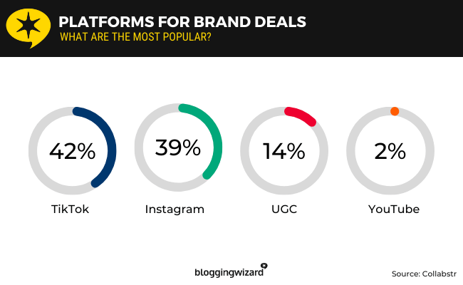 Collabstr は 2022 年のレポートで、有料コラボレーションの 48% が Instagram で行われ、46% が TikTok で行われたことを発見しました。