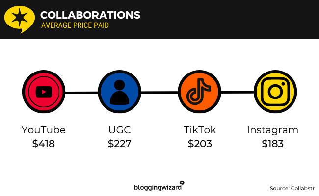 これは、TikTok と Instagram のインフルエンサーが稼ぐ平均額 (コラボレーションあたり平均 203 ドル、183 ドル) の 2 倍です。