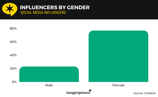 5. ソーシャルメディアのインフルエンサーの 77% が女性