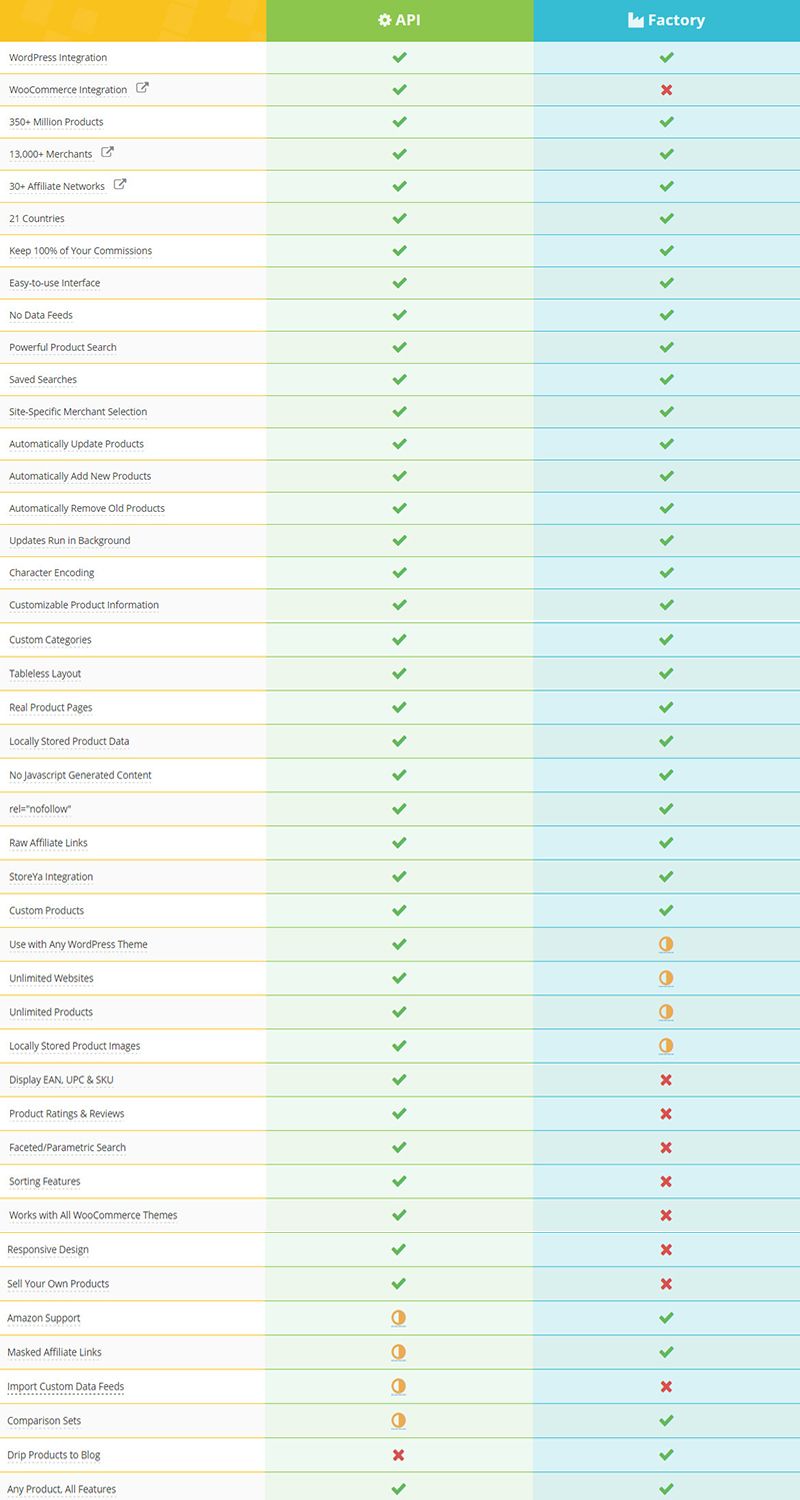 どれを選ぶべきかまだ混乱していますか? 下の画像を確認し、APIとFactoryの完全な比較については画像をクリックしてください。