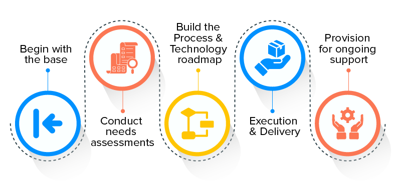 3. プロセスとテクノロジーのロードマップを作成する–プロセスの設計とテクノロジーのマッピングに取り組み、プロセスで何を解決できるか、テクノロジーに何を組み込む必要があるかを判断することから始めます。 次に、統合された配信方法を使用して、プロジェクトの所有者や統合の責任者などの重要な質問を明確にします。