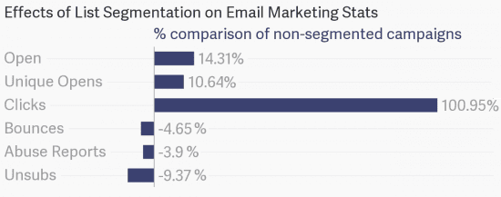 メーリング リストをセグメント化すると、クリック率が 100% を超える可能性があります。 適切な対象者に合わせたメールを作成することで、適切な人にメッセージを見てもらうことができます。