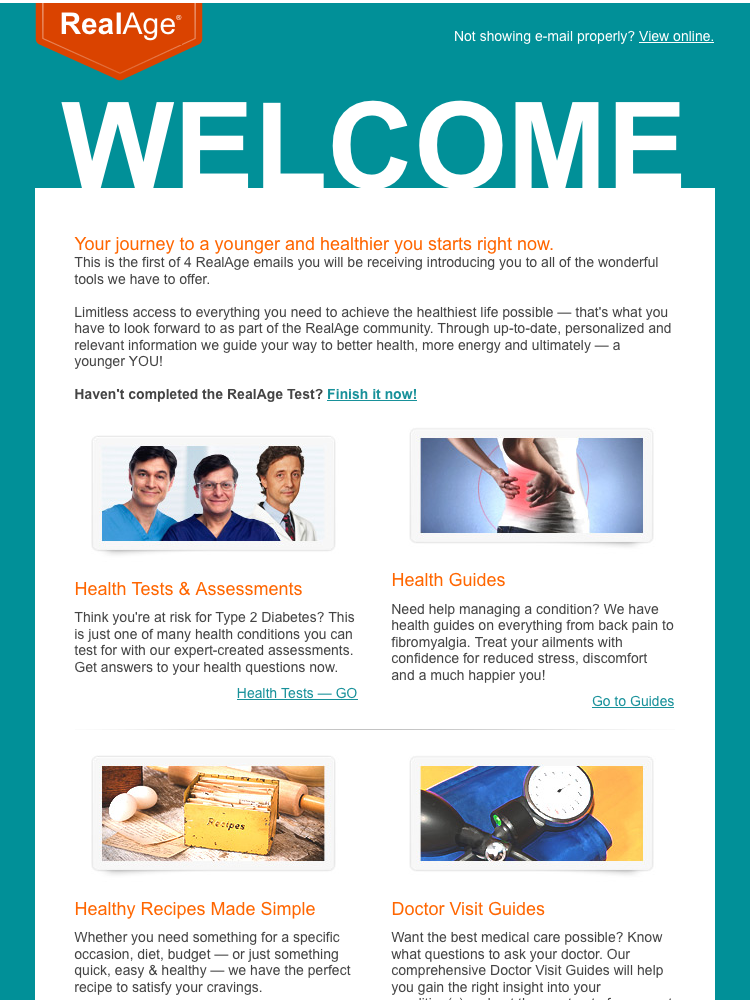 新しい顧客がメーリング リストにサインアップすると、ウェルカム メールで会社とその製品またはサービスを紹介できます。 プロモーションを含む簡単なウェルカム メールにすることも、以下のような詳細情報を提供するウェルカム メールを試すこともできます。
