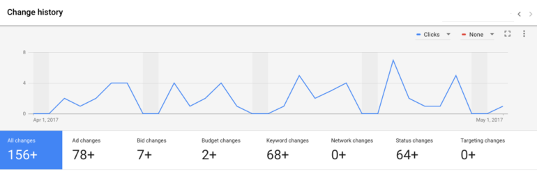 - 変更履歴ははるかに視覚的です。 キャンペーンベースおよびキャンペーンタイプごとに行われた変更の総数を一目で確認できます。