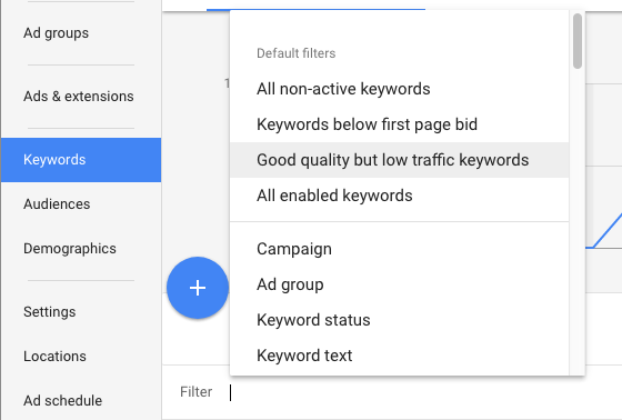 私が感じる最も顕著な違いは、新しいAdWordsダッシュボードでのフィルターの動作方法です。