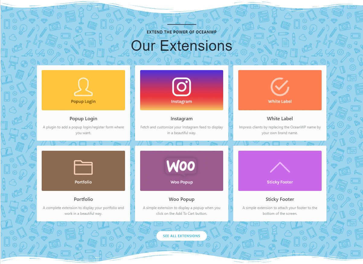 これらの機能のいずれかまたはすべては、プレミアムテーマ、または他の場合にはプレミアムプラグインまたはアドオンの購入を必要とします。 しかし、OceanWPは、ビジネス戦略の一環として、このすべての値をデフォルトでゼロコストで提供します。
