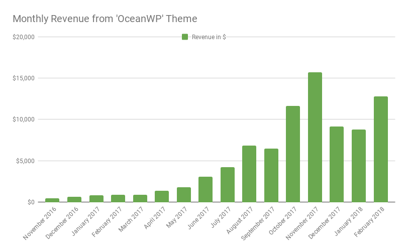 このモデルが彼らにとって非常にうまく機能したことは周知の事実です。 だから、暗闇の中で矢を放つとは限らないことはわかっていました。 今日まで早送りすると、私のOceanWPテーマは60,000回以上ダウンロードされており、プレミアムアドオンの売上も悪くありません。