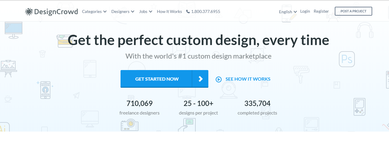 DesignCrowd は、企業がブリーフをクリエイティブなフリーランサーのプールに投稿できるようにする、コミュニティ ベースのフリーランス サイトです。 デザイナーは検討のためにアイデアを提出するよう招待され、選択されたら、編集やフィードバックについてクライアントと直接連絡を取ることができます。 作品が完成したら、サイトから直接ダウンロードできます。