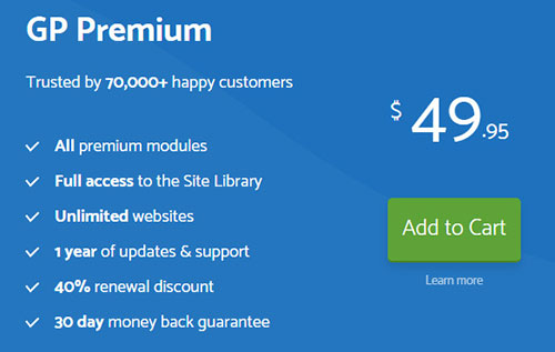 いつでも使用できるGeneratePressテーマの無料バージョンがあります。 GeneratePressのプレミアムバージョンは無料ではありません。 49.95ドルでご利用いただけます。