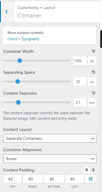 11.間隔–間隔アドオンを使用すると、GeneratePressでマージンサイズとパディングを管理できます。 このモジュールは、セカンダリメニュー、ヘッダー、フッターウィジェット、フッターパディング、ウィジェット、サイドバーの幅、コンテナーの個別、幅のパディング、コンテンツのパディングなどで使用できます。