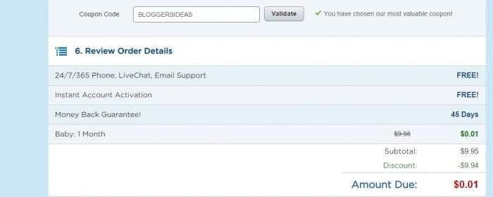 私が言ったように、プレミアムホスティングであることは多くの費用がかかり、私のHostgator割引クーポンを使用しても、合計請求額から25%割引を受けることができます.