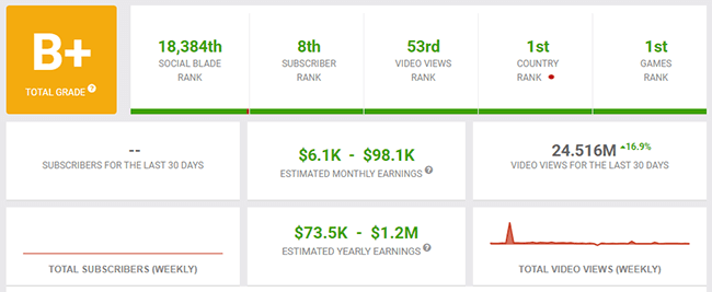 SocialBlade は、彼らの月収を 61 万 3,600 ドルから 980 万ドルと推定しています。