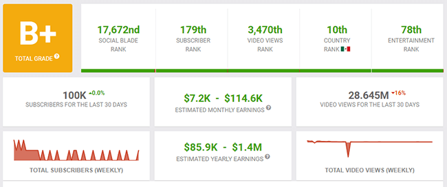 たとえば、彼のスペイン語チャンネルには 2,450 万人の登録者がおり、月間 2,865 万回の視聴があります。 これにより、このセカンダリ チャネルの推定収益は月あたり 7,200 ドルから 114,600 ドルとなります。