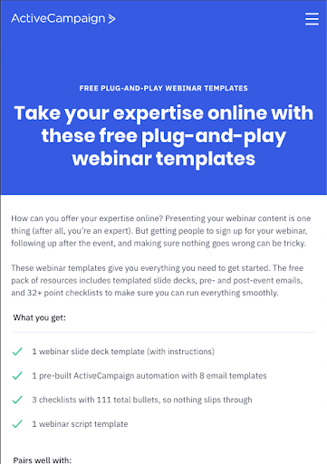 ActiveCampaignウェビナー無料ツールテンプレート。