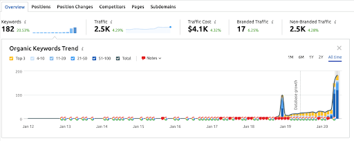 「これらは、ブランド化されたキーワードとブランド化されていないキーワードの両方で非常によくランク付けされています。 だから私はまったく驚かなかった。 そして、彼らの会社が全体としてどのように見えるかを知りたかったのです。 そして、彼らも成長しています。」