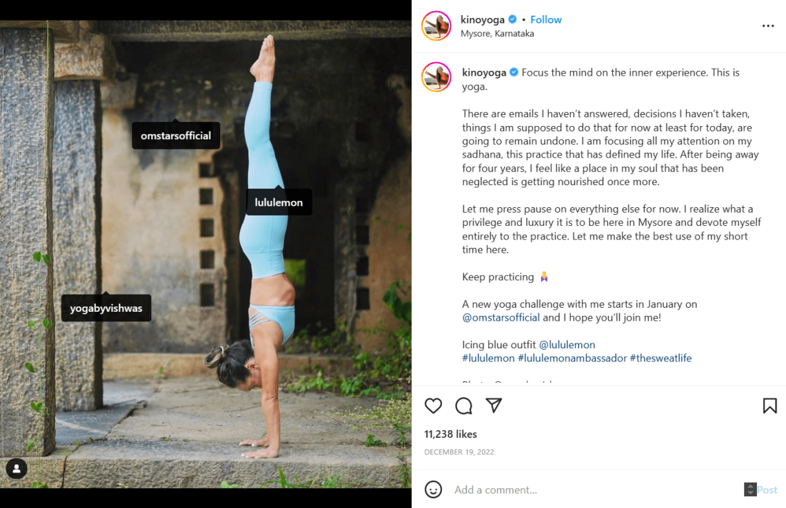 Instagram の他に、Kino は YouTube チャンネルとブログを運営しています。 彼女はまた、ヨガの練習とその利点についていくつかの本を書いています.