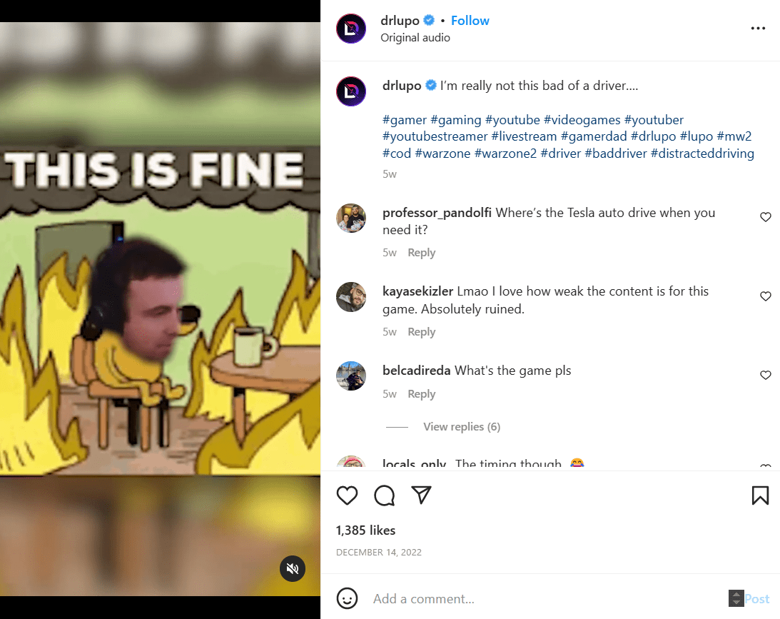 Lupo 博士は、自分自身を中西部出身の父親、夫、ゲーマーであると説明しています。 彼は普段は FPS ゲームをプレイしていますが、彼の Instagram プロフィールには、彼の人生やビデオのさまざまなスニペットも含まれています。