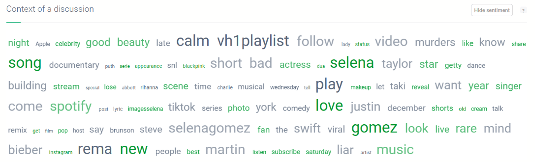 ここでは、セレナ ゴメスのディスカッションのコンテキストがどのように見えるかを確認できます。
