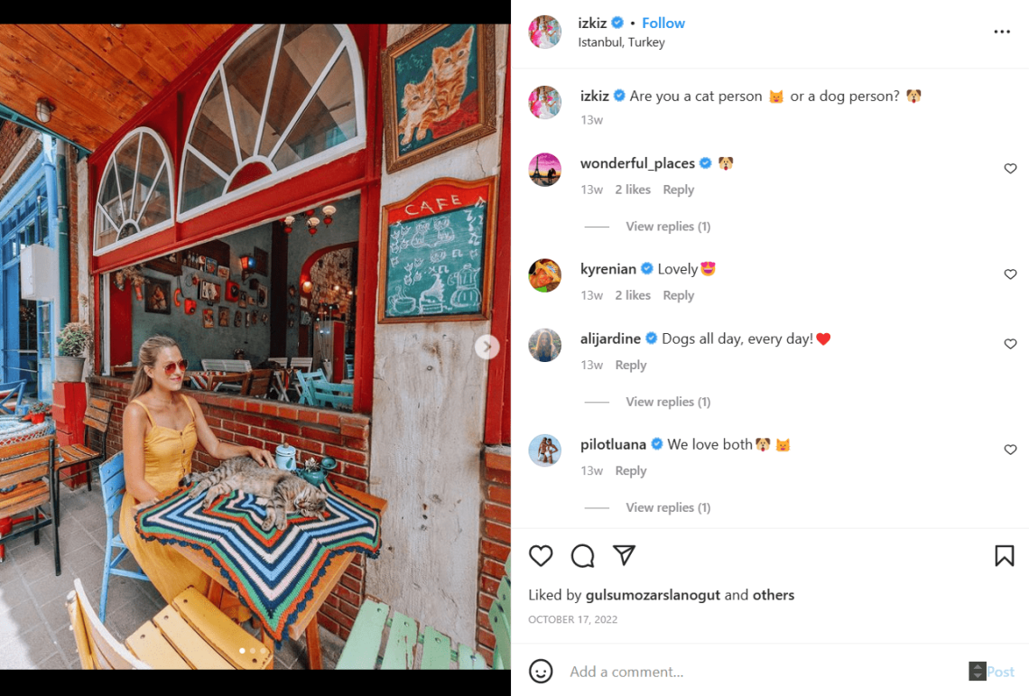 彼女のインスタグラムでは、Izkiz で編集された世界中のカラフルで魅力的な写真を見つけることができます。