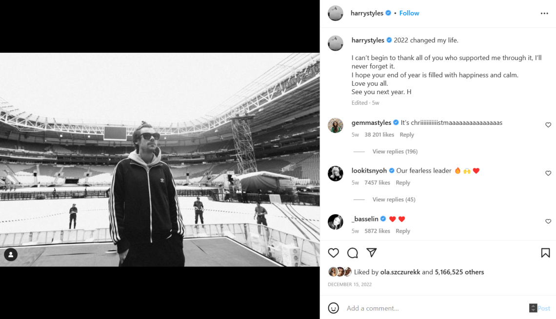 ご覧のとおり、その人物はアディダスの靴を履いているハリー・スタイルズについて言及しています。 歌手は非常に有名で、Instagram のフォロワー数は 4,790 万人なので、ブランドが彼とコラボレーションするのは良い考えかもしれません。