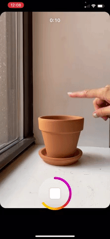ライト、電話、アクション! 丸い白い録画ボタンを長押しして撮影を開始します。 二重矢印アイコンを使用して、カメラを自分の方に向けるか、目の前にあるものを撮影します。