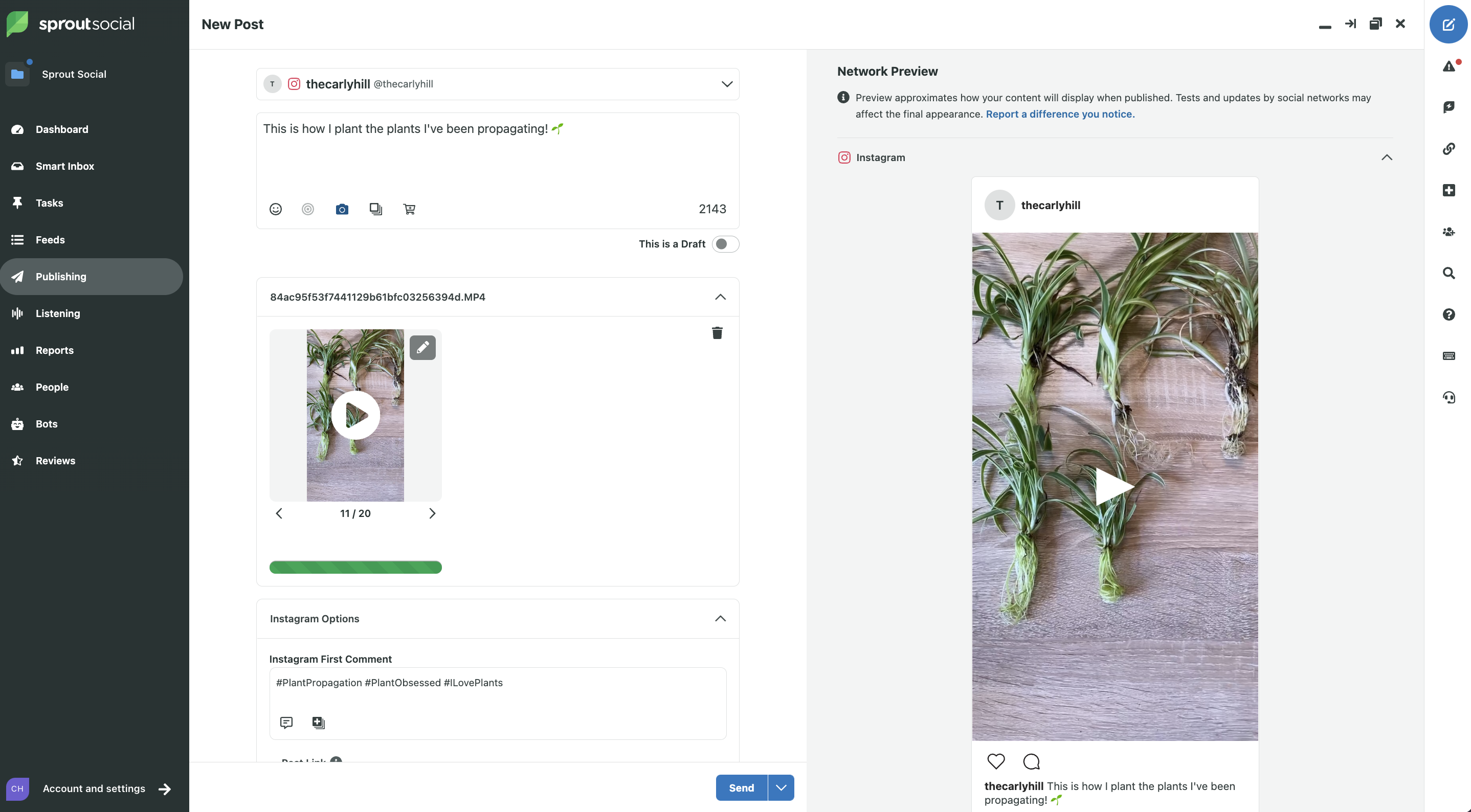 次に、Sprout にアップロードして、Instagram と同じ方法で準備できます。
